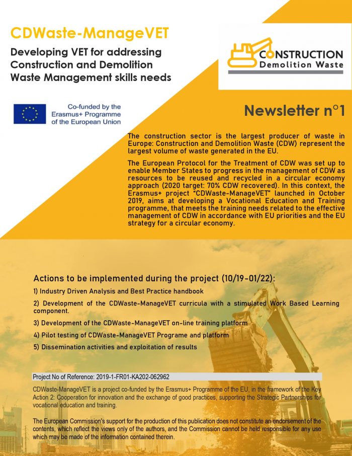 Reunión inicial en Bucarest La Universidad Politécnica de Bucarest (UPB) -Rumanía- acogió la reunión de lanzamiento del proyecto CDWaste-ManageVET que se celebró durante los días 20 y 21 de noviembre de 2020. Fue la primera oportunidad para que los socios se presentaran, hablasen de sus organizaciones y planificaran en detalle todas las actividades del proyecto,…